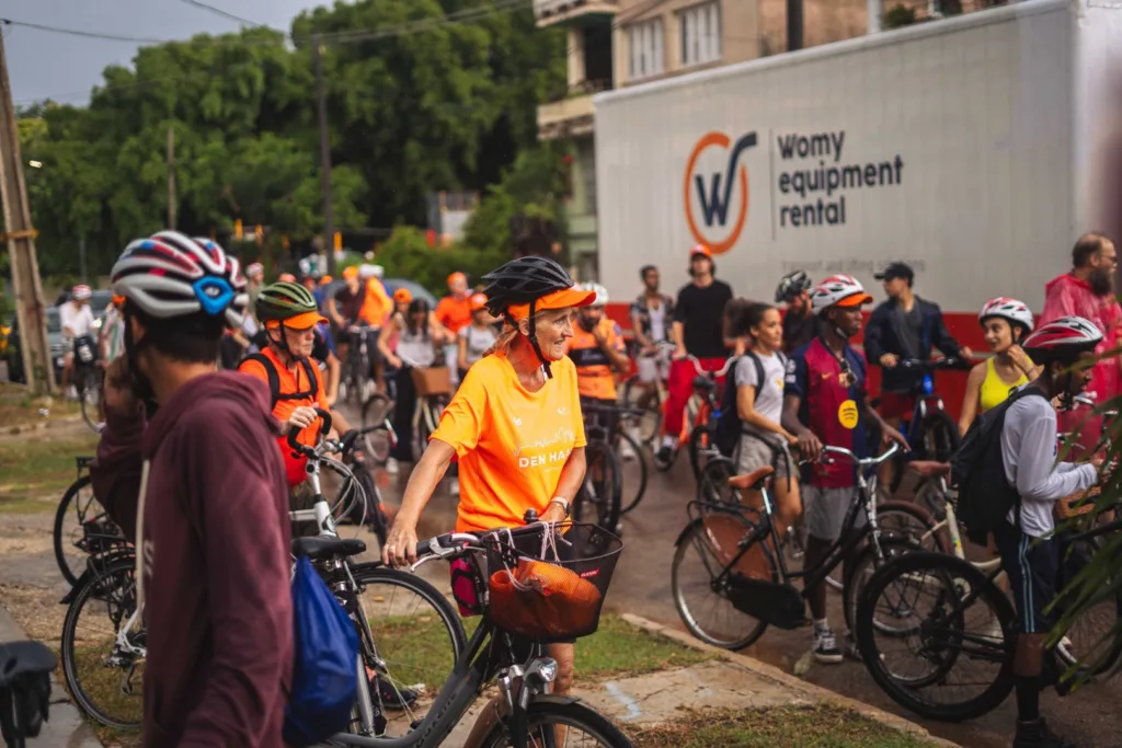 La Embajada de Países Bajos facilitó la participación en la masa crítica de personas que no tenían bicicleta, gestionando, con un generoso apoyo, bicicletas más de 70 de Ha’Bici y Velocuba para ponerlas a disposición del público de manera gratuita.